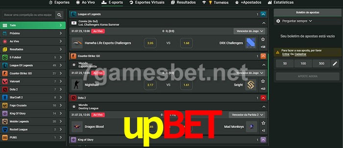 O upbet oferece uma grande seleção de opções de apostas em e-sports com probabilidades competitivas